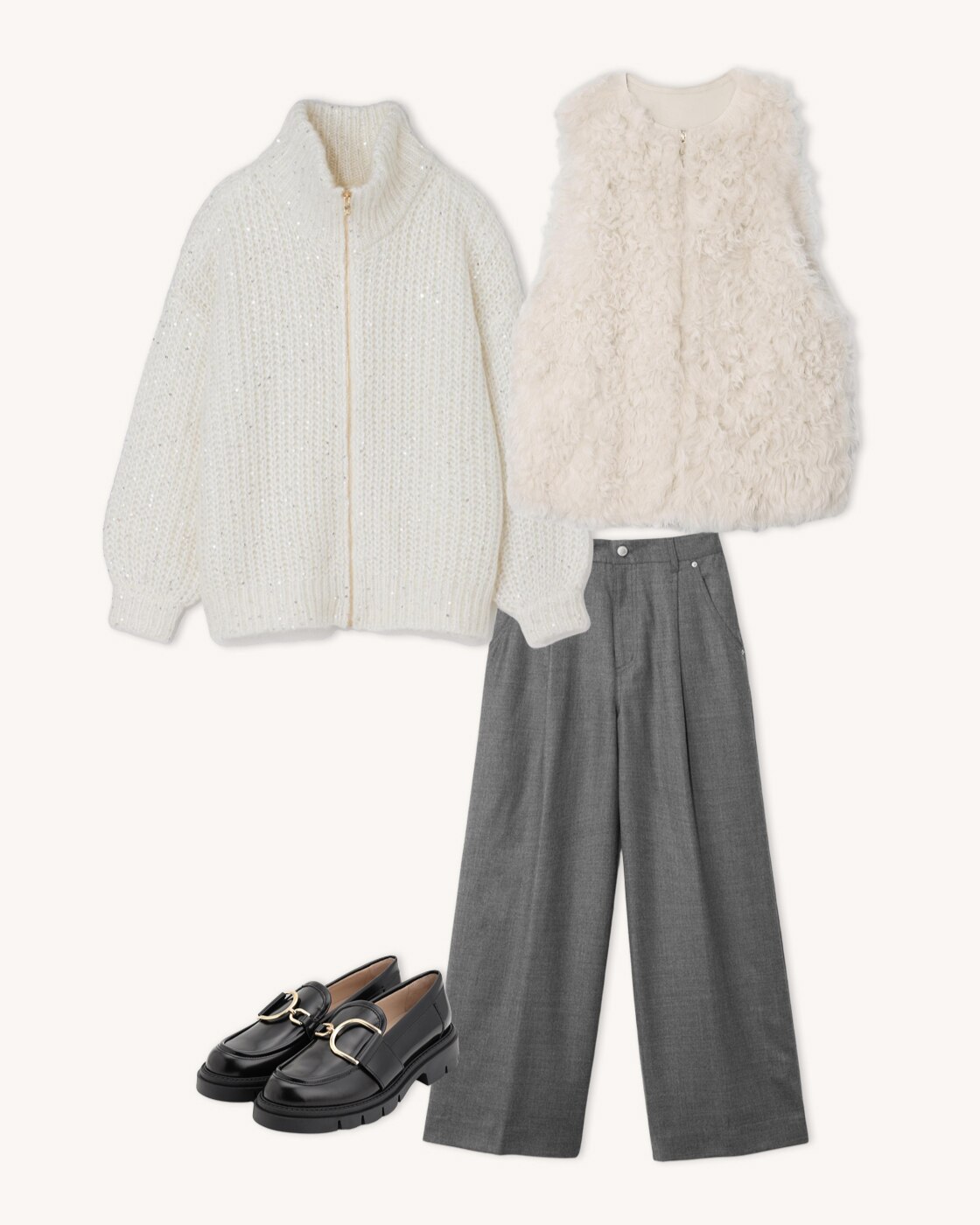 Gilet ¥253,000 / Blouson ¥66,000 / Pants ¥46,200 / Shoes ¥44,000