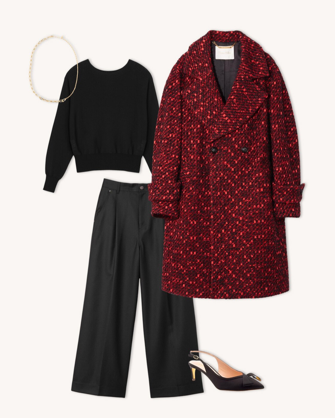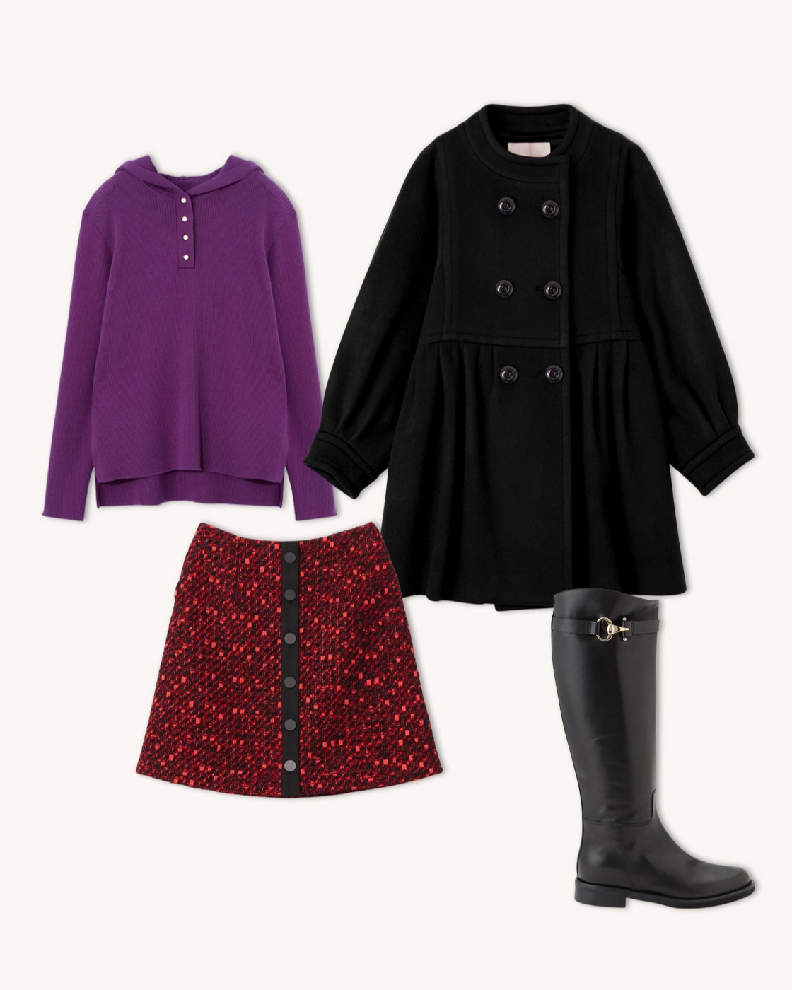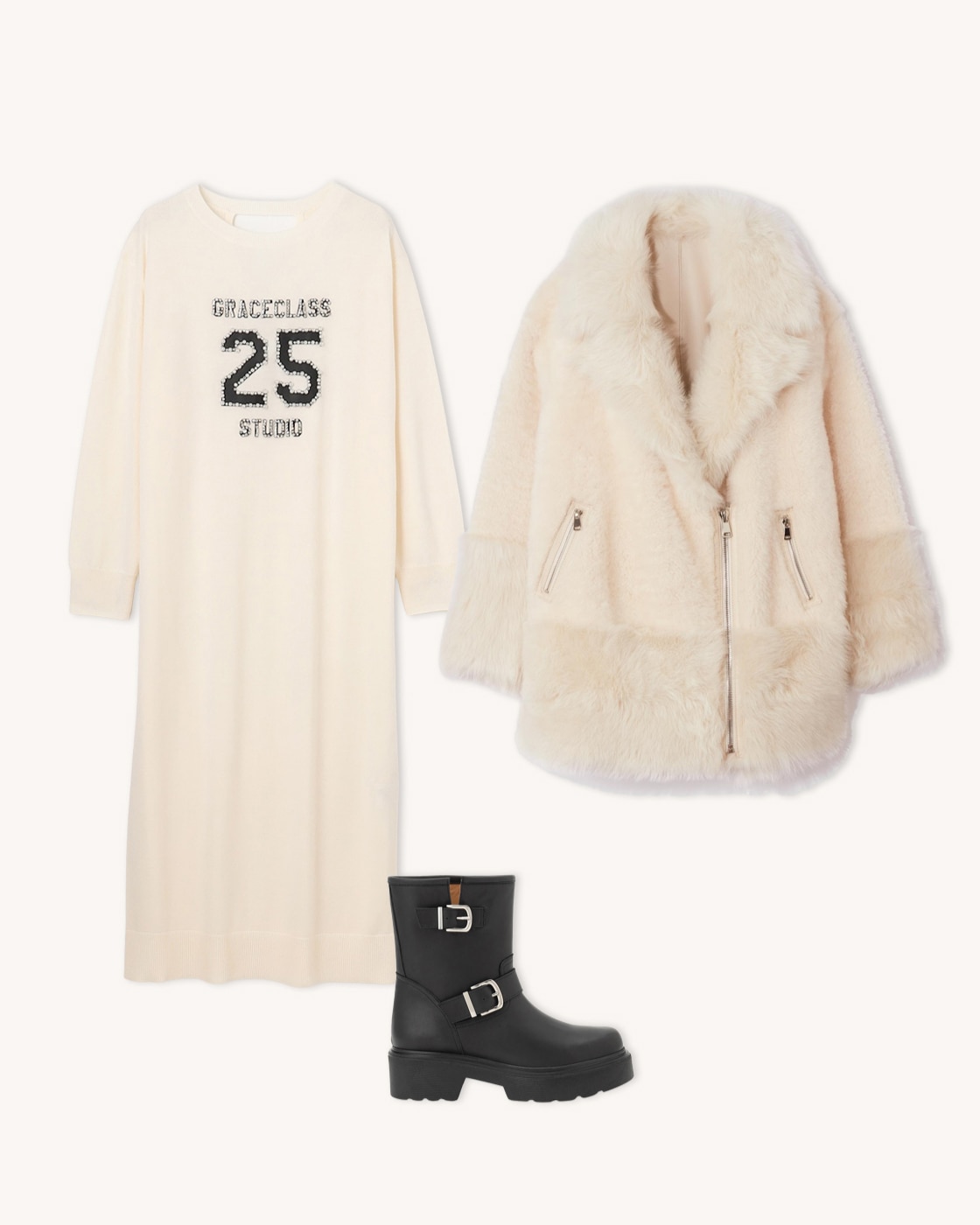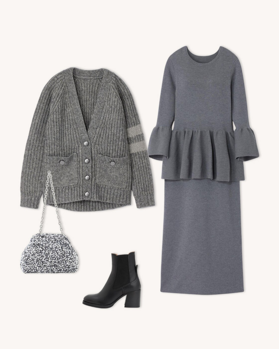 Cardigan ¥53,900 / Dress ¥64,900 / Bag ¥31,900 / Shoes ¥63,800