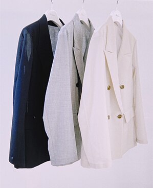 リネンのような爽やかな質感が魅力のジャケット。ボクシーなシルエットやサイドベンツは本格的なメンズジャケットを思わせる。ジャケットの本質を味わいたいあなたにおすすめです。