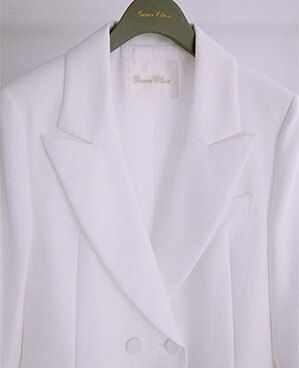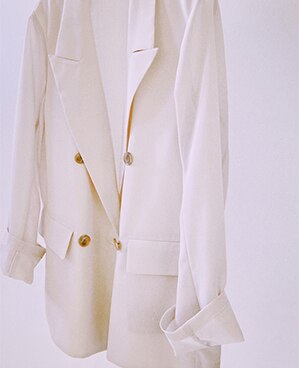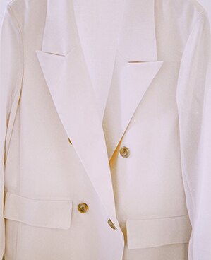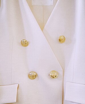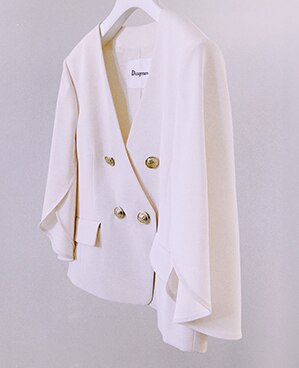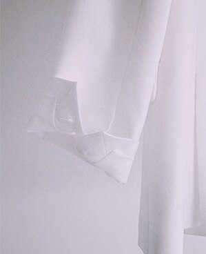 上質な素材だからこそ映える純白。ボタンも共布でくるむことで、ミニマルな印象に。