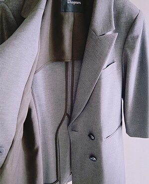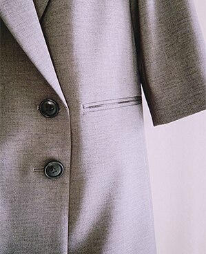 薄い肩パッドを入れることで、肩先まで美しいシルエットを保ちます。