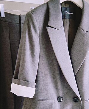 メンズのボクシーなシルエットではありながら、後ろのウエストラインを自然にシェイプすることで、女性が美しく見えることに拘ります。