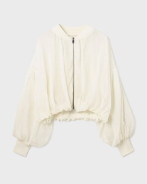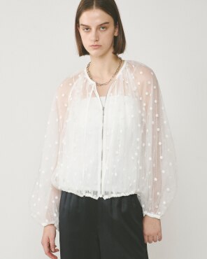 柔らかいチュールとドットが合わさり、繊細なブラウスのような華やかさ。