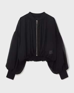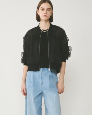 イレギュラーに彩る、チュールギャザーがデザインポイントに。透けすぎないので幅広いシーンで活躍。
