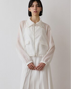 アクティブな一日に気兼ねなく羽織れるメッシュのブルゾン。脱いでもコンパクトで移動にも便利。
