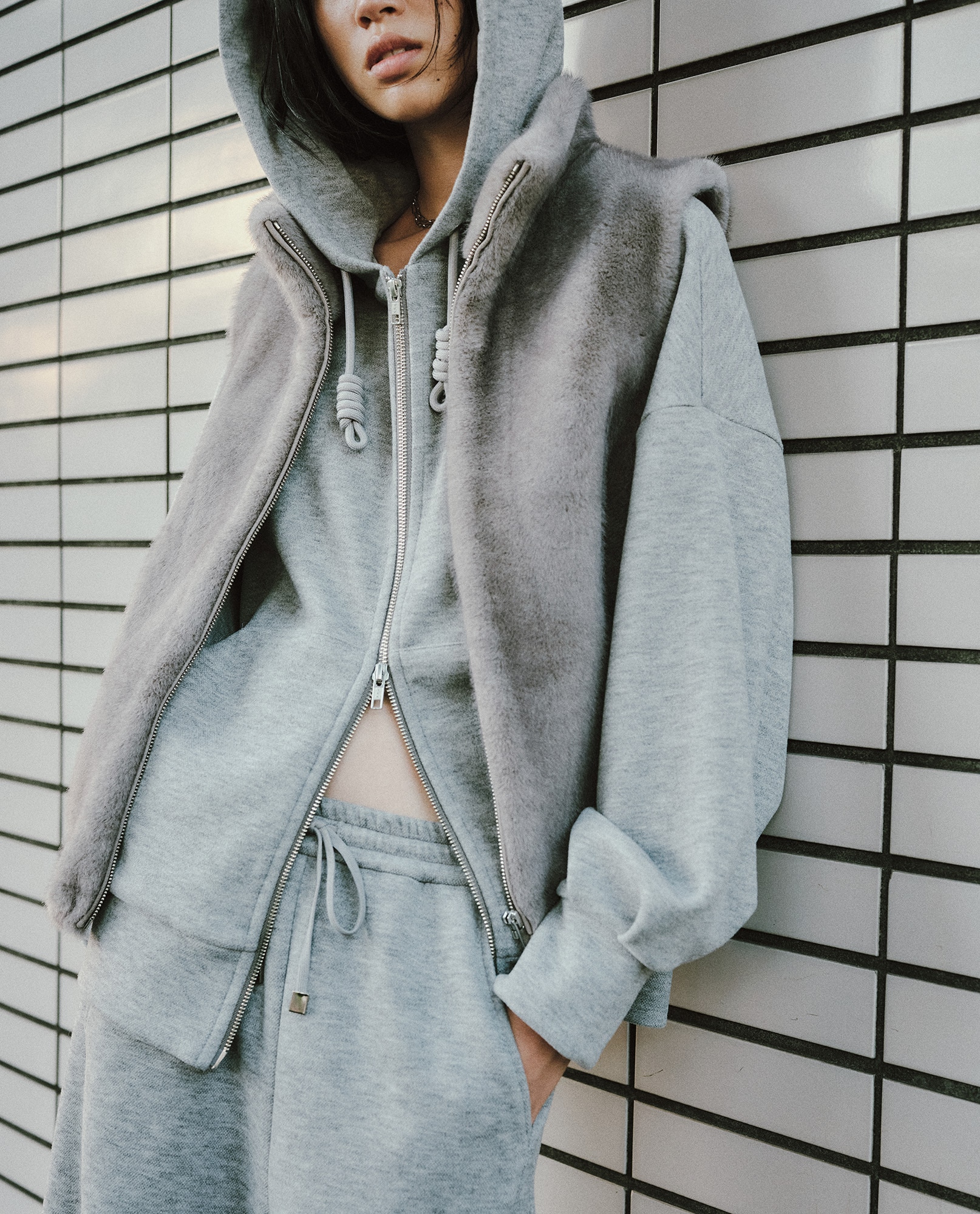 暖かみとラグジュアリー感のあるヘビースウェット素材。 程よい重厚感のある生地は、秋から本格的な真冬までスタイリングに取り入れられる。