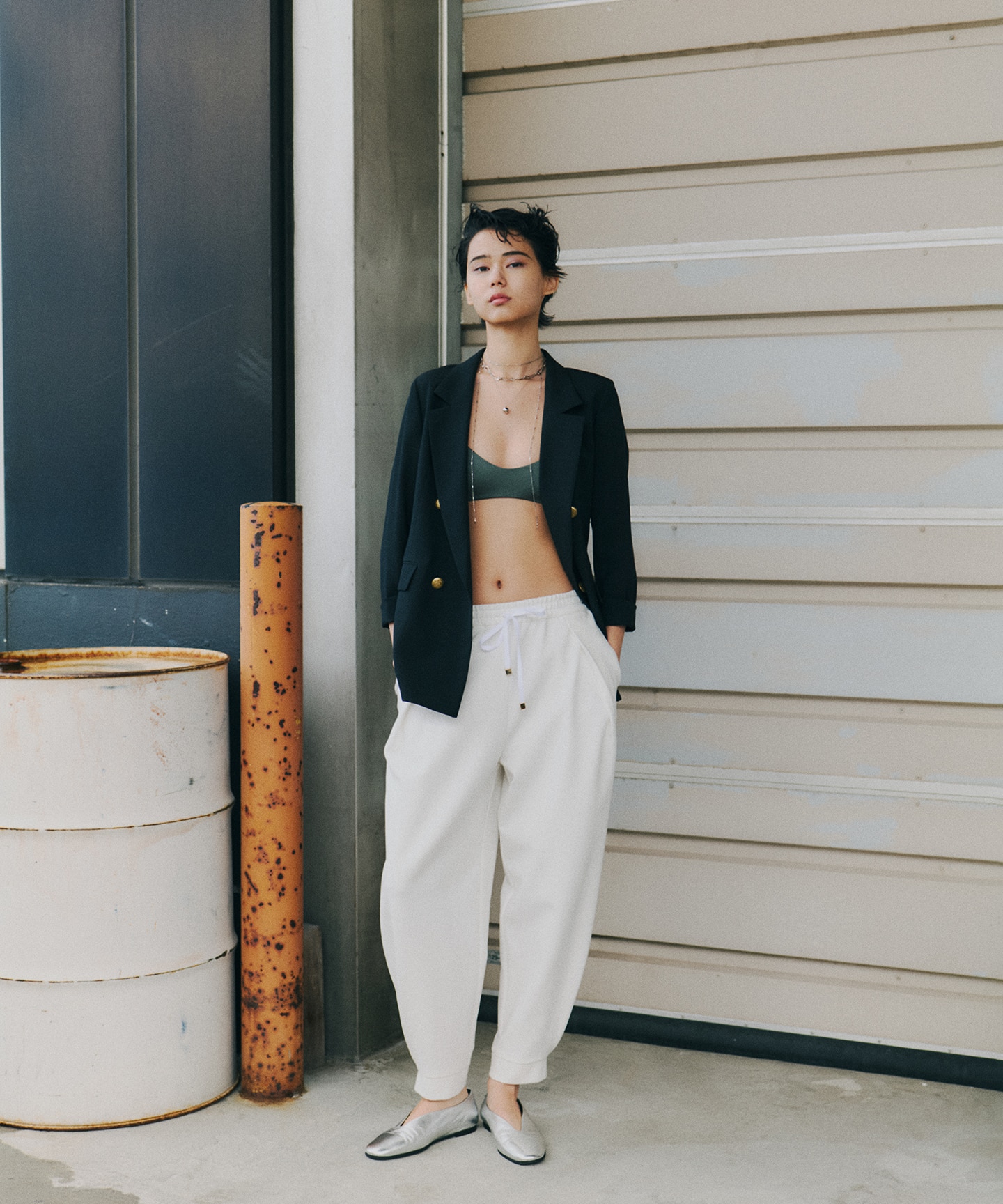 テーラードを羽織って完成する