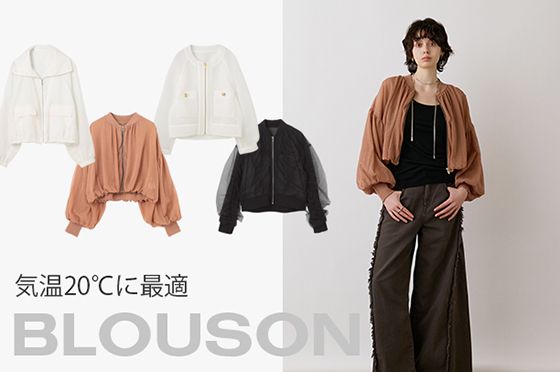 春夏シーズンに爽やかなシアー素材のブルゾン。肌を露出しすぎない、控え目な透け感が大人っぽい。また、袖を大きく膨らませたバルーンシルエットが特長です。