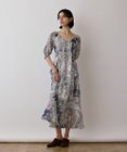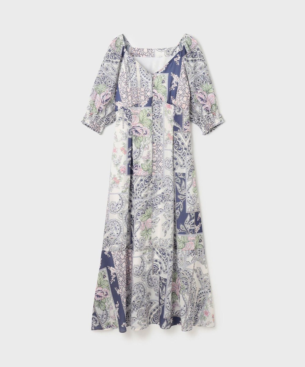 GRACE CONTINENTAL スカーフプリントドレス ネイビー