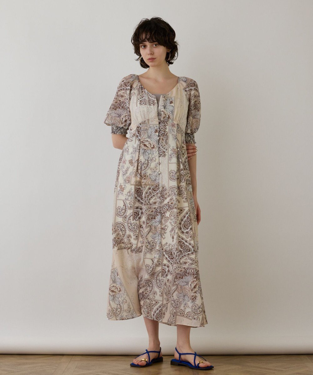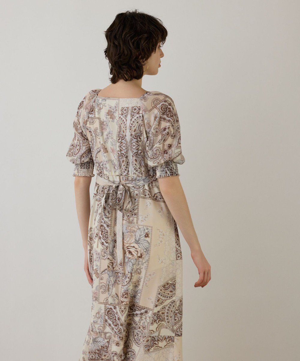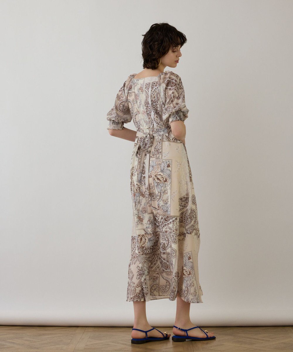 GRACE CONTINENTAL スカーフプリントドレス ベージュ