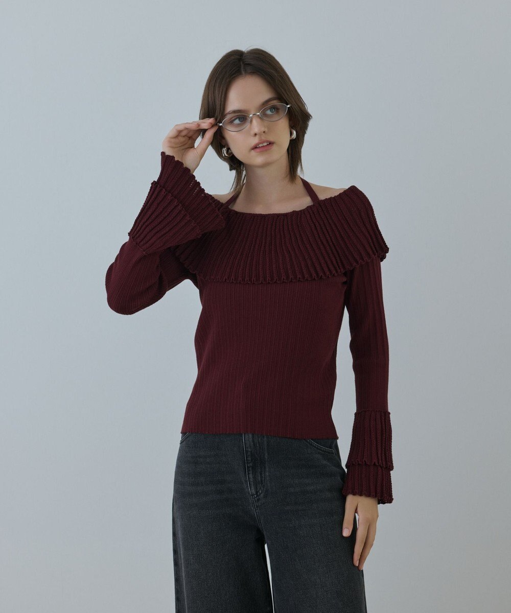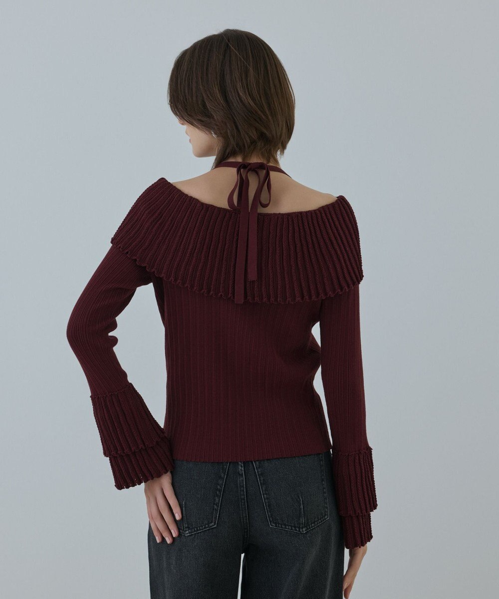 GRACE CONTINENTAL アイレットフレアニットトップ ボルドー
