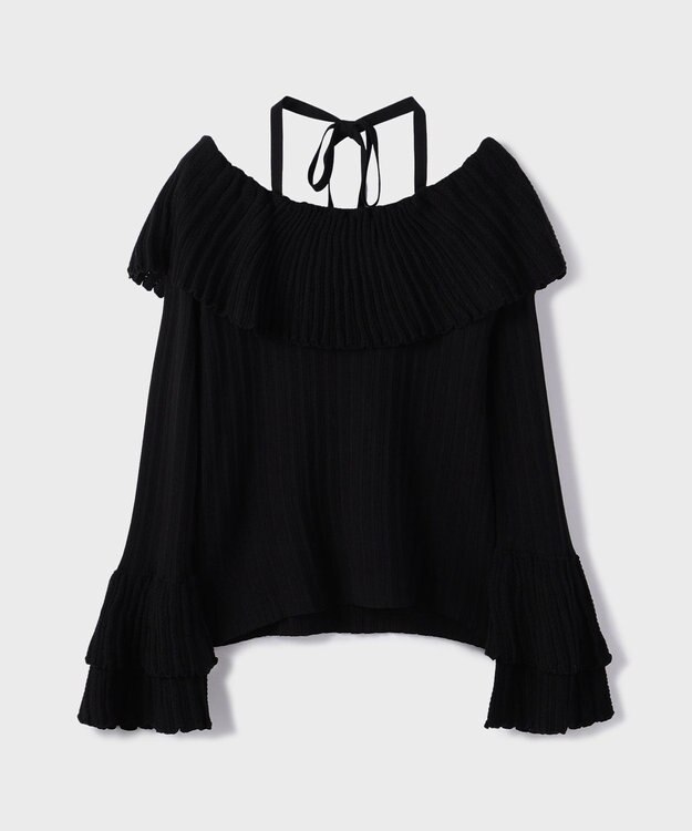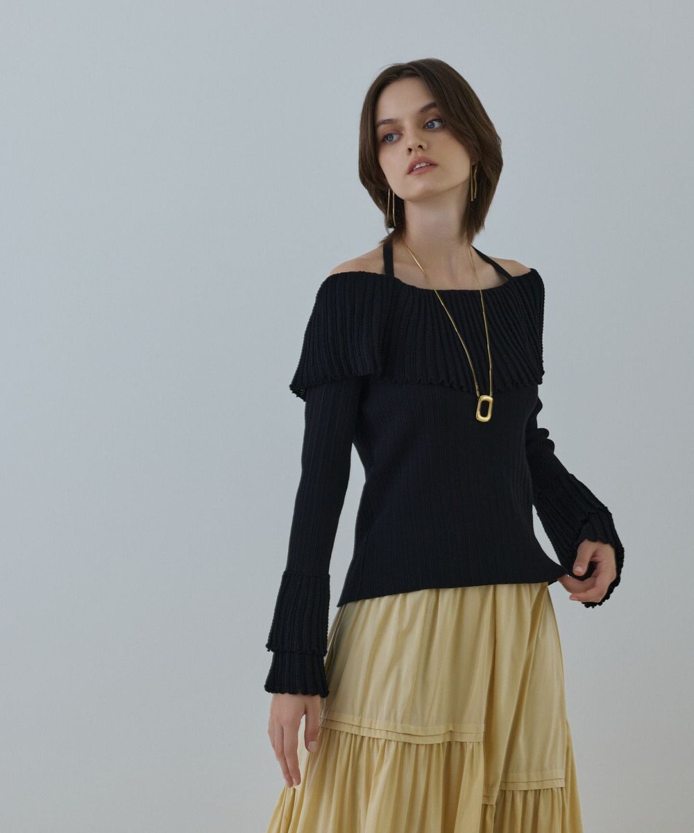 GRACE CONTINENTAL アイレットフレアニットトップ ブラック