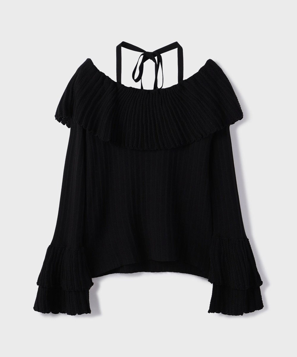一枚で品よく着映える、フリルがポイントになったリブニットトップス。