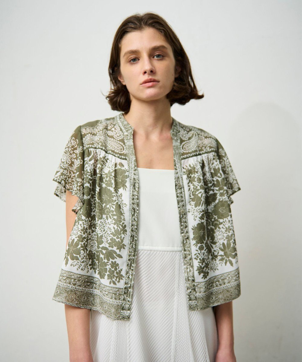 GRACE CONTINENTAL バンダナフレアスリーブブラウス カーキ